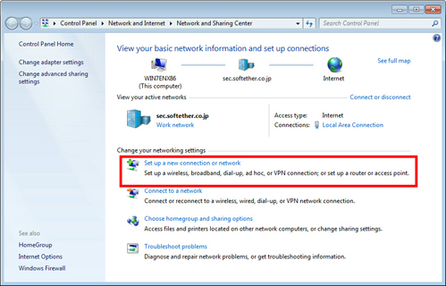 Click "Set up a new connection or network" on the "Network Sharing Center" .